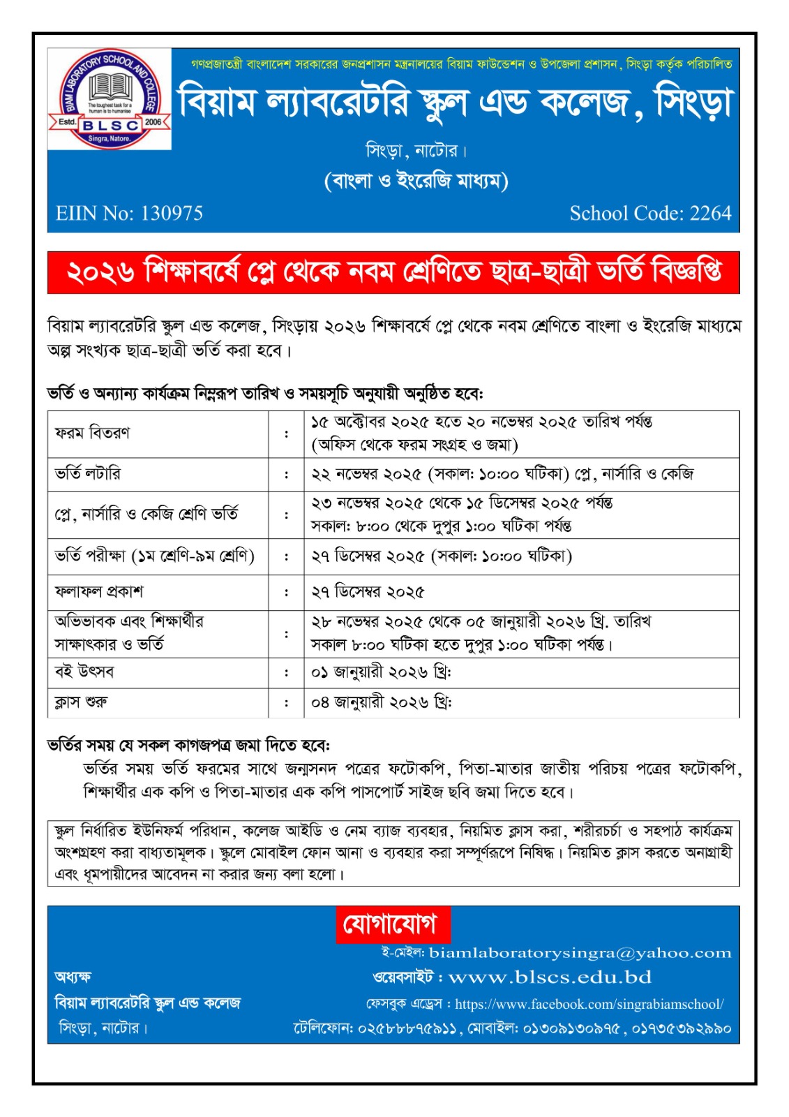 | 2 | ২০২৬ শিক্ষাবর্ষে ভর্তির নোটিশ | General |